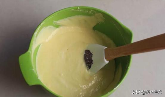 5、翻拌均匀,再倒入剩余蛋白翻拌至均匀无颗粒。