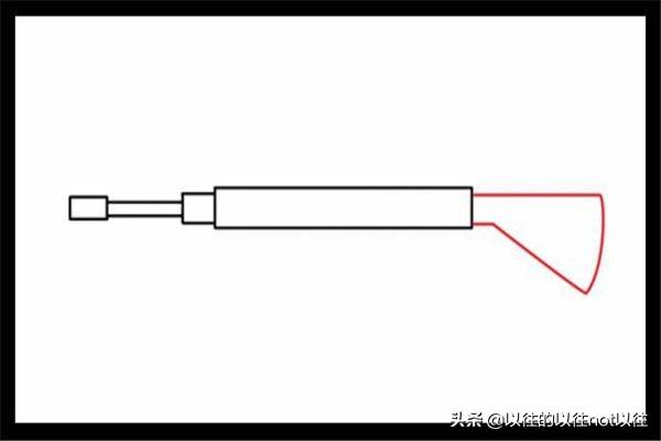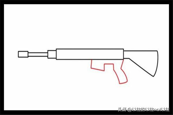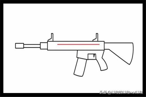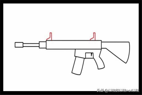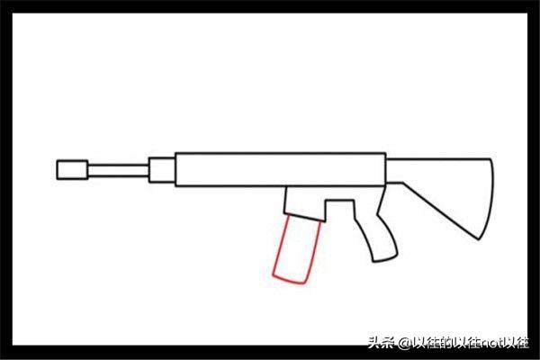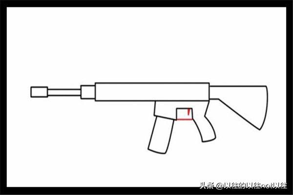 7.然后,在槽和把手空的中间用横线链接,在凹槽处画类似锥形作为扣击按键,接着在最长的长方形上方左右两边画瞄准槽。最后在最长的长方形上画一条长的横线勾画细节。就完成了。